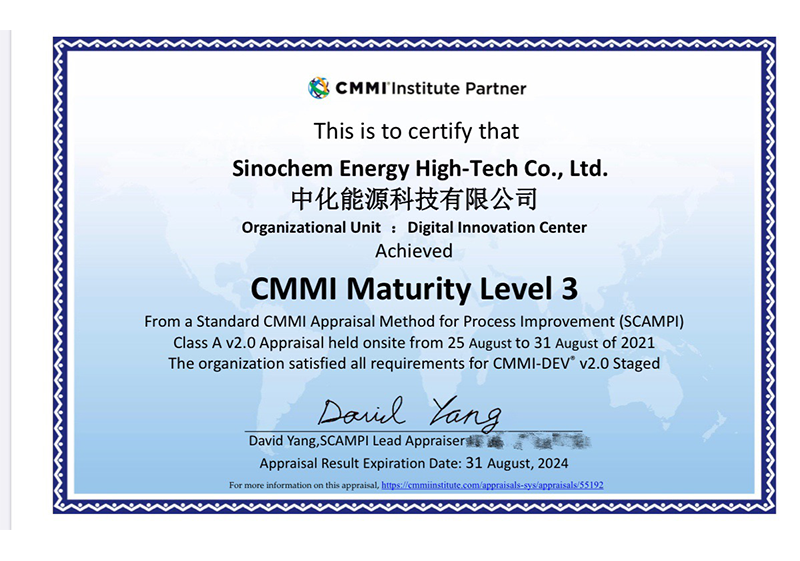2021年12月,荣获软件能力成熟度集成模型(CMMI 3级)